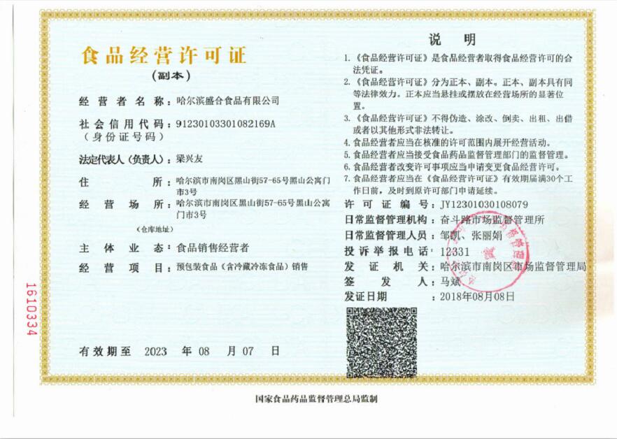 哈爾濱盛合食品有限公司是一家集蔬菜、水果、肉類(lèi)、冷凍食品、副食品、海鮮、淡水魚(yú)類(lèi)、南北方知名調味品、糧油、日用品及辦公用品為一體以批發(fā)配送服務(wù)經(jīng)驗,主要面向哈爾濱企事業(yè)單位的食堂,各大院校、中小學(xué)、幼兒園食堂,大型餐飲企業(yè)的食材及物資配送。本著(zhù)“食品安全重如山”的宗旨,堅持“創(chuàng )一流品質(zhì)、創(chuàng )一流服務(wù)”的經(jīng)營(yíng)理念,將您從繁重的采購工作中解脫出來(lái),提供更便捷、更省心、更高效的一站式食材配送服務(wù)。我公司承諾:所有項目的產(chǎn)品從知名廠(chǎng)家和國家指定的生產(chǎn)基地采購合格的產(chǎn)品,確保商品質(zhì)量最優(yōu)、價(jià)格最合理、售后服務(wù)最人性化。